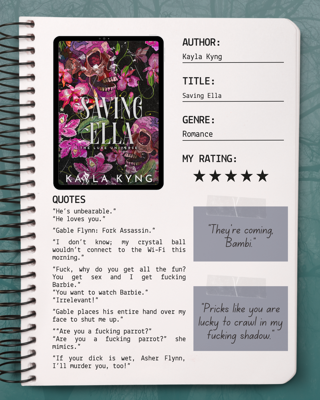 It's not normal for a book to make a person laugh this much. Gable and Ella's back and forth is fucking hilarious.